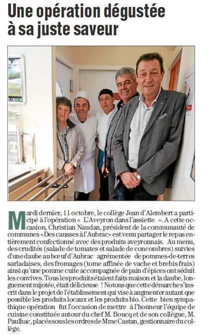 Paru dans la Volonté Paysanne pour le collège de Severac