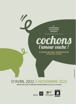 Le cochon. Son nom n’évoque pas seulement la nourriture que l’on en tire, les souvenirs de foires et de fêtes du cochon, il est aussi un symbole moral construit sur son rejet ou son attrait. Il est présenté tour à tour comme sauvage et comme l’animal domestique partageant l’intimité de la famille. En partant de l’exemple aveyronnais, l’exposition décrypte les relations qui unissent l’homme au cochon sur les plans économique, culturel et symbolique et propose de porter un nouveau regard sur cet animal. Outre une sélection d’objets du musée et de sa réserve, le parcours inclut des prêts de musées aveyronnais, du MuCEM de Marseille et du musée de la résistance et de la déportation du Cher, ainsi que des documents audiovisuels de l’Institut occitan de l’Aveyron et du Carto Club 12.