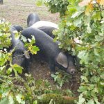Mon cheptel est actuellement composé de 12 truies et 2 verrats ainsi que d’une centaine de porcs charcutiers. Les reproducteurs sont répartis dans 2 parcs d’un hectare chacun.